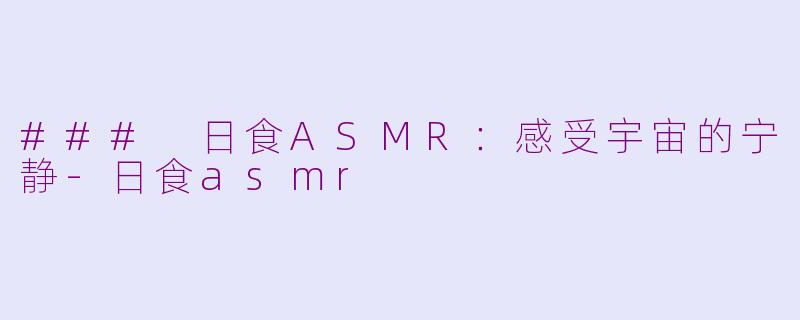 日食,这一千载难逢的天文现象,吸引了无数人的目光。而结合ASMR(自发性知觉经络反应),则为我们带来了前所未有的体验。日食ASMR不仅仅是视觉的盛宴,更是听觉的享受。在这一过程中,我们可以感受到大自然的宁静与神秘。