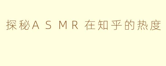 在知乎这个知识分享平台上,ASMR(自发性感觉经外刺激反应)成为了近年来备受关注的话题。许多知友在提问和回答中分享了对ASMR的独特体验和看法,引发了广泛的讨论和关注。越来越多的人开始关注ASMR,通过听觉和触觉的方式来获得放松和舒缓的效果。不仅如此,知友们还分享了各种ASMR视频和节目,让更多人能够感受到这种奇妙的心灵体验。ASMR在知乎上的热度不断上升,吸引了越来越多的用户对这一主题进行讨论和探索。通过知乎,人们可以更深入地了解ASMR的背后故事和奥秘,以及它对人们心理健康的积极影响。愿ASMR在知乎上继续发光发热,让更多人受益于这种独特且神奇的体验。