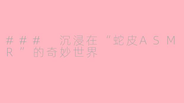 ### 沉浸在“蛇皮ASMR”的奇妙世界