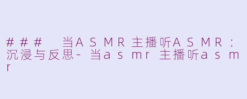 ### 探索“爱上asmr1005爱上asmr”的静谧魅力