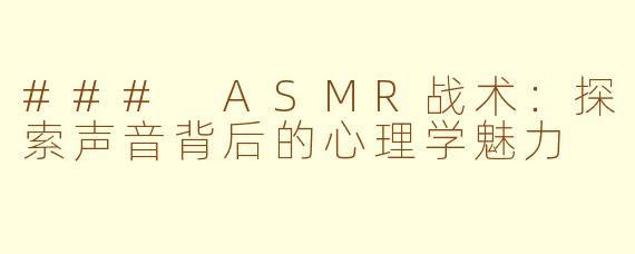 在商业领域,ASMR战术也被巧妙运用。一些企业通过制作ASMR形式的广告,成功抓住了年轻消费者的心。通过声音的魅力,这些广告不仅让品牌产生记忆点,还增强了消费者的忠诚度。