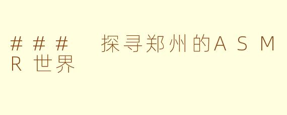 无论是在繁忙的工作之余,还是在日常生活的压力下,ASMR都给人们提供了一种新的解压方式。在郑州,爱好者们不仅可以享受ASMR的独特体验,还能够通过交流和分享,感受到更深层次的放松与平静。这股声音的疗愈潮流,正悄然改变着人们的生活方式。