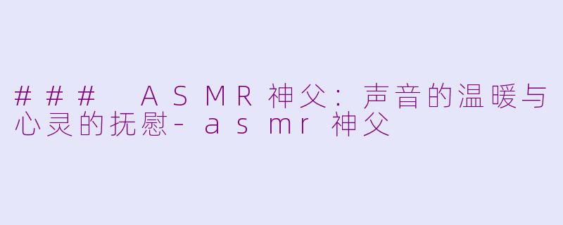 在现代社会中,越来越多的人开始追求内心的平静与放松,而ASMR(自主感知经络反应)作为一种独特的声音体验,逐渐走入了大众的视野。近年来,“ASMR神父”这一新兴角色,更是通过温柔的声音和细腻的交流,给予听众心灵的慰藉。