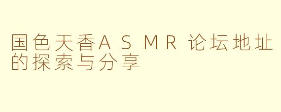 随着ASMR(自主感官经络反应)在网络上的流行,越来越多的爱好者们聚集在各大论坛,分享他们的感受和经验。其中,“国色天香”作为一个备受关注的ASMR论坛,吸引了无数玩家的加入。这个论坛不仅提供了丰富的ASMR资源,还有许多专业的主播和创作者进行互动。