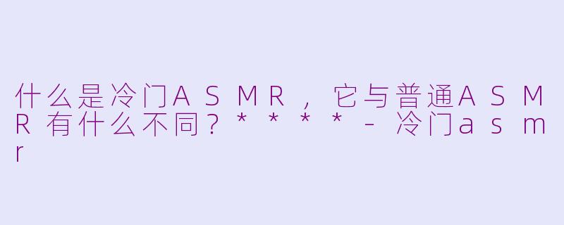 什么是冷门ASMR,它与普通ASMR有什么不同?****