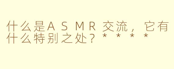 ASMR交流是通过声音和视觉刺激创造的一种亲密和放松的体验,通常包含细腻的声音,如低语声、轻拍声或耳语声。这种交流方式能够引发听者的自主感知经络反应,带来放松和愉悦的感受,特别适合那些希望减轻压力和焦虑的人。**