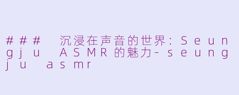 ### 沉浸在声音的世界:Seungju ASMR的魅力