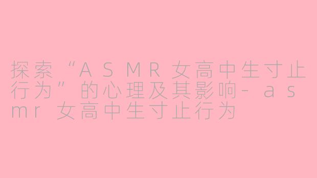 探索“ASMR女高中生寸止行为”的心理及其影响