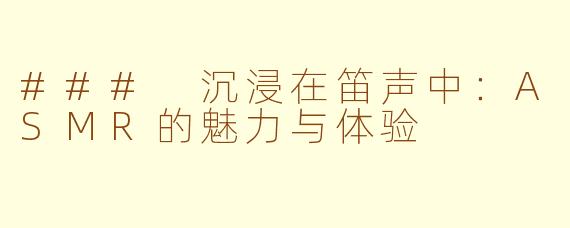 在这个喧嚣的现代社会,越来越多的人开始寻求放松和宁静的方式。笛子作为一种古老而优雅的乐器,其柔和的音色和灵动的旋律,成为ASMR(自主感觉经络反应)的理想伴侣。笛子ASMR不仅能够让人感受到声音的美妙,还能引导听者进入一种深度放松的状态。