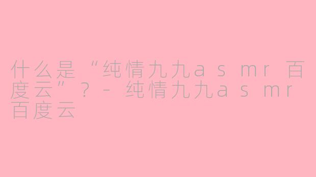 “纯情九九asmr百度云”是指一种ASMR(自主感觉经络反应)视频或音频,其内容可能与纯情或温柔的主题相关,通常会在百度云等平台上分享。ASMR的目的是通过特定的声音和情景营造出让人放松的体验。
