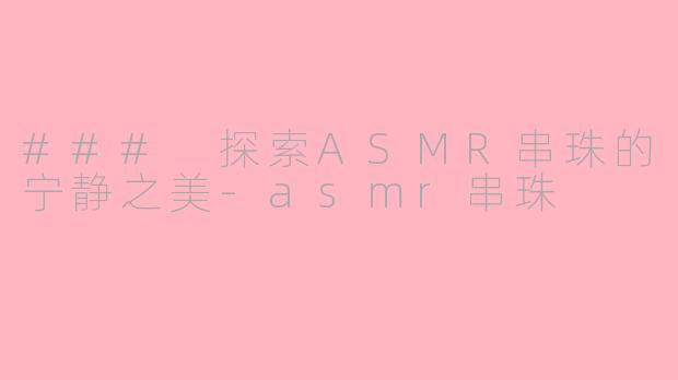 ### 探索ASMR串珠的宁静之美