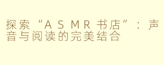 探索“ASMR书店”:声音与阅读的完美结合