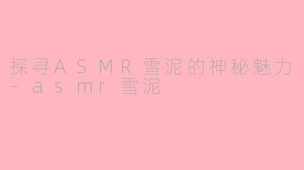 探寻ASMR雪泥的神秘魅力