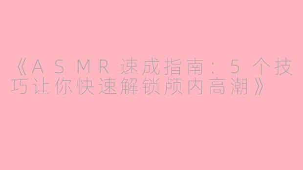 《ASMR速成指南:5个技巧让你快速解锁颅内高潮》