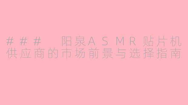 ### 阳泉ASMR贴片机供应商的市场前景与选择指南