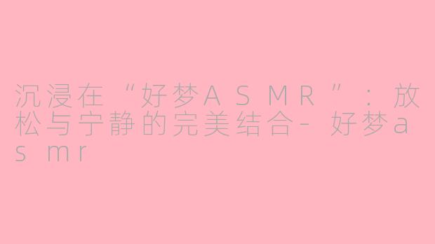 沉浸在“好梦ASMR”:放松与宁静的完美结合