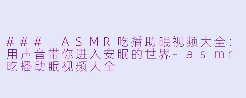 ### ASMR吃播助眠视频大全:用声音带你进入安眠的世界