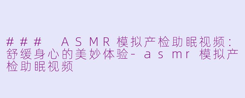 ### ASMR模拟产检助眠视频:舒缓身心的美妙体验