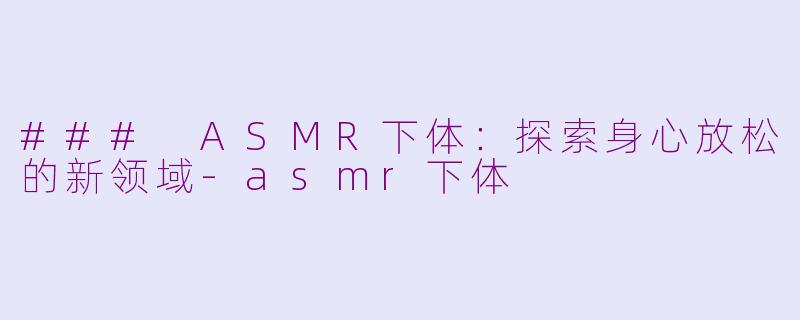 ### ASMR下体:探索身心放松的新领域