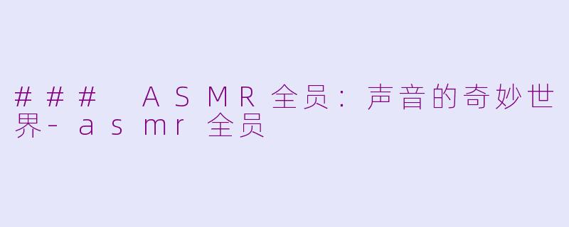 随着网络文化的发展,ASMR(自发性知觉经络反应)逐渐走入大众视野。ASMR全员,是指那些通过声音或视觉刺激,帮助听众放松、减压的人群。他们的作品常常融合了耳语、敲击、刷动等多种声音元素,让听众在细腻的声波中找到心灵的宁静。