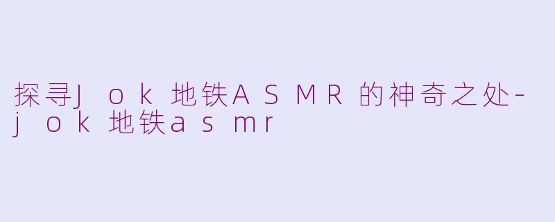 地铁ASMR,是一种通过音频刺激视觉和听觉中枢,让人产生舒缓、放松甚至入眠的感觉。而近期,一名名为Jok的ASMR创作者正慢慢成为地铁ASMR领域的领军人物。Jok通过精心制作的地铁环境音频,将乘客带入仿佛置身于地铁列车的错觉中。