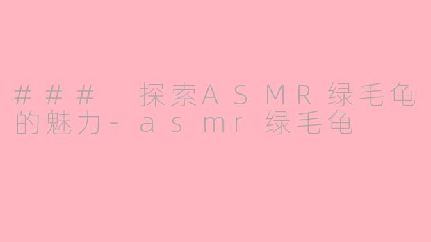 探索“殊ASMR”:宁静与舒适的声音体验