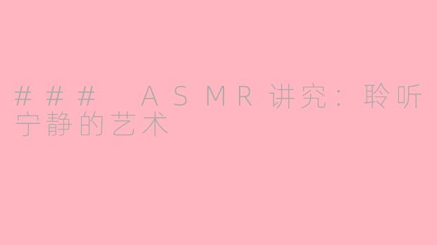 在忙碌的现代生活中,人们常常感到压力倍增,而ASMR(自发性知觉经络反应)则成为了一种创新的放松方式。其中,“ASMR挖”这一特定形式,透过各种挖掘和刮擦的声音,带给我们身心的慰藉。