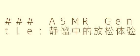 在纷繁复杂的现代生活中,Gentle ASMR提供了一种逃离现实的方式。无论是夜晚入睡前还是白天短暂的小憩,Gentle ASMR都可以成为我们放松身心的良伴。通过一段ASMR视频或音频,让我们在轻柔的声音中找到那份平静,重拾内心的宁静与安详。