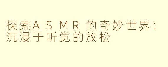 在这个快节奏的社会中,追求内心的宁静显得尤为重要,而ASMR为我们提供了一个简单而有效的途径。无论是轻声细语,还是脆响声,都能在特定的环境中给予我们深度的放松体验。因此,了解和参与ASMR,不仅是为了享受声音的悦耳,更是为了改善心理健康,提升生活质量。