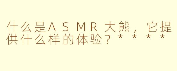 ASMR大熊是一种结合了ASMR(自主感觉经络反应)和可爱大熊形象的音视频内容,通常通过轻柔的声音、细腻的物品触碰声以及舒缓的背景音乐来帮助观众放松心情、减轻压力。观看者在欣赏这些内容时,常常会感到一种愉悦的刺痛感,带来独特的放松体验。**