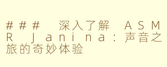 ### 深入了解 ASMR Janina:声音之旅的奇妙体验