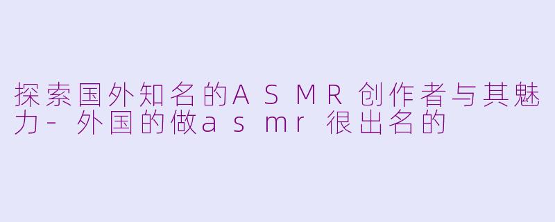 近年来,ASMR(自主知觉经络反应)在全球范围内获得了广泛关注,许多外国创作者因其独特的内容而声名显赫。比如,ASMR Darling以其细腻的声音和专业的录音技巧赢得了大量粉丝。她的场景设定如模拟理发、宠物互动等,营造出令人放松的氛围,帮助观众缓解压力。