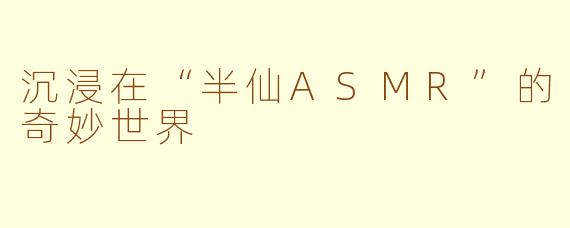 “半仙”通常是指那些具有神秘能力的人,然而在ASMR中,它更是一种意象,一种带给人们宁静与舒适的心灵避风港。通过轻声细语、耳语、以及各种细腻的声响,听众可以在日常生活的喧嚣中寻找到片刻的宁静。声音的节奏与音调变化,能够有效缓解压力,帮助人们进入放松状态。