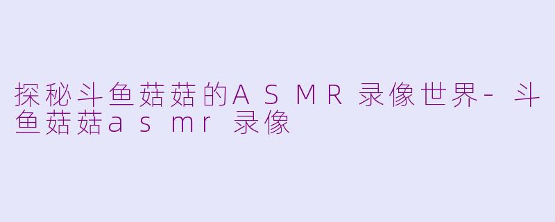 ASMR(Autonomous Sensory Meridian Response)是一种通过某些刺激(如轻柔的声音、触感或视觉刺激)引起放松、愉悦或刺激特殊感受的生理现象。在ASMR领域,人们常常通过观看或制作ASMR视频来体验这种愉悦的感觉。