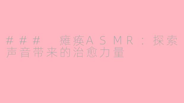 ### 瘫痪ASMR:探索声音带来的治愈力量
