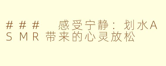 在快节奏的生活中,许多人常常会感到压力和焦虑,导致入眠困难。而ASMR(自发性知觉经络反应)正好成为缓解这些问题的有效方式。其中,轩子模拟洗头的 ASMR 视频因其独特的声音和场景设定,受到了广泛欢迎。