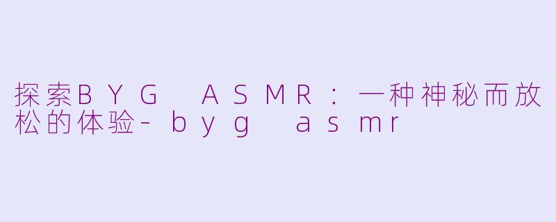 随着现代生活节奏的加快,越来越多的人寻求放松和减压的方法,而ASMR(自发性知觉经络反应)便应运而生。BYG ASMR是这一领域中的佼佼者,以其独特的声音和视觉体验吸引了众多粉丝。