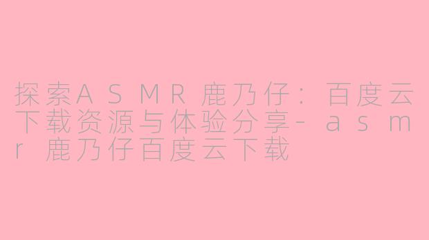 近年来,ASMR(自主感官经络反应)逐渐成为一种流行的放松与减压方式,其中鹿乃仔作为一位备受欢迎的ASMR主播,凭借其独特的声音和细腻的互动赢得了众多粉丝的喜爱。许多人希望能够通过百度云下载她的作品,以便随时享受那份安宁与舒适。