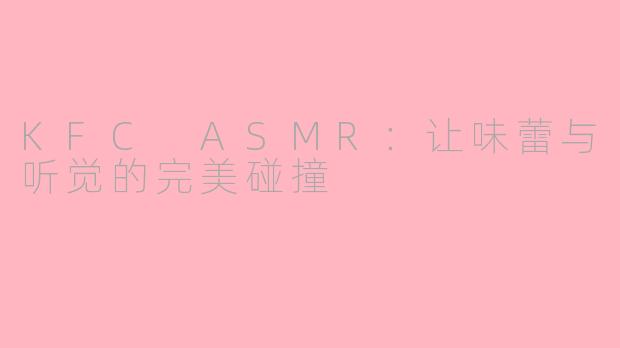 KFC ASMR:让味蕾与听觉的完美碰撞