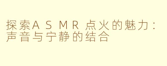 ASMR点火的内容不仅多样,往往结合着不同的视觉效果,比如录制在烛光摇曳的环境中,营造出一种温馨的氛围。无论是静坐冥想还是夜晚入睡,ASMR点火都能带来身心的放松。让我们在快节奏的生活中,找到一片宁静的乐土。