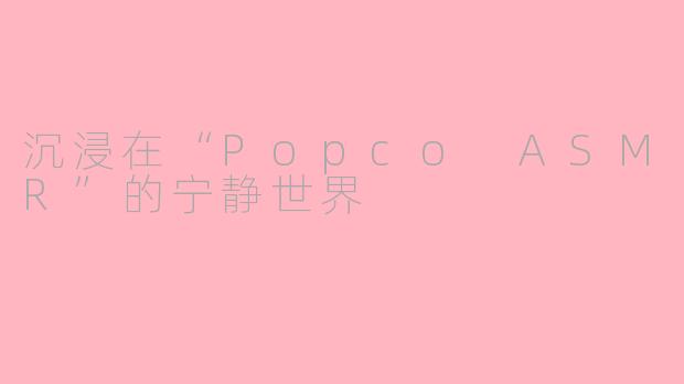 在现代快节奏的生活中,越来越多的人开始寻求放松与舒缓的方式,而“Popco ASMR”正好满足了这一需求。ASMR(自发性知觉经络反应)是一种听觉体验,通过特定的声音刺激让人感到放松。Popco ASMR则在此基础上,结合了丰富多样的声音元素,以创意的方式带来独特的听觉享受。