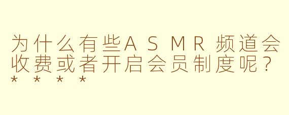 为什么有些ASMR频道会收费或者开启会员制度呢?****