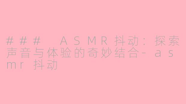 ASMR抖动通常指通过细腻的声音表现,如轻轻的物体碰撞、纸张的翻动或是耳边的低语,使观众产生一种愉悦的触觉反应。这种震动感不仅能引发愉悦,更能唤起人们内心深处的平静与温暖。ASMR抖动的魅力在于它能够通过声音的层次与力度,激发不同的心理体验,让人们在喧嚣的生活中找到一丝宁静。