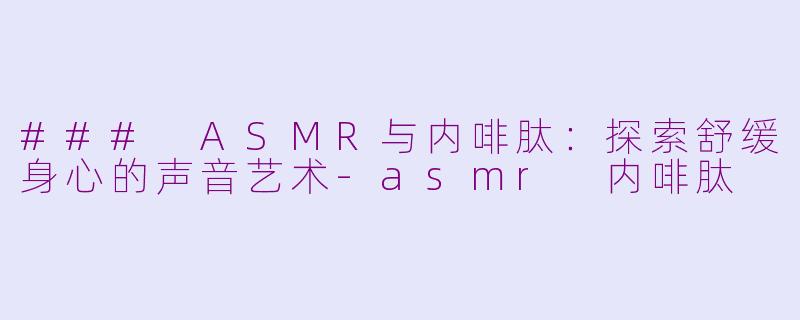 近年来,ASMR(自发性知觉经络反应)现象逐渐走入大众视野,其通过特定声音刺激引发的轻微愉悦感受,帮助许多人缓解压力和焦虑。而在神经科学中,内啡肽(Endorphins)作为一种内源性神经递质,被认为与快乐、缓解痛感密切相关。