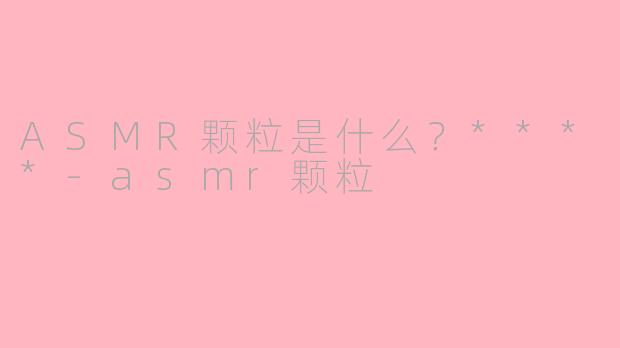 ASMR颗粒通常指的是在ASMR(自发性知觉经络反应)视频或音频中,所使用的一种声音元素,像是轻轻的敲击、抓挠或揉捏等声音,能够引发听者的放松和愉悦感。这样的声音可以帮助缓解压力,提高注意力,甚至改善睡眠质量。**