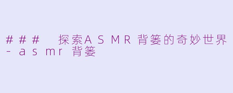 随着ASMR(自主感觉经络反应)在网络上的普及,越来越多的人开始关注这一独特的放松体验。在众多ASMR创作者中,Elle ASMR以其温柔的声音和细腻的表现风格脱颖而出。Elle通过各种声音和视觉刺激,让观众在快节奏的生活中找到片刻的宁静。