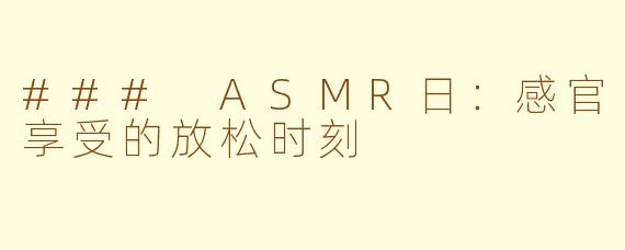 在ASMR日,许多创作者会发布主题视频,诸如角色扮演、物品声和自然声音,旨在帮助观众缓解压力、改善睡眠。与此同时,社交媒体平台上也会出现丰富多样的ASMR挑战,让更多人体验这一独特的感官享受。无论是忙碌的生活还是压力的工作,ASMR日为我们提供了一个放松自我、回归内心的完美契机,让每个人都能在喧嚣中找到一丝宁静。