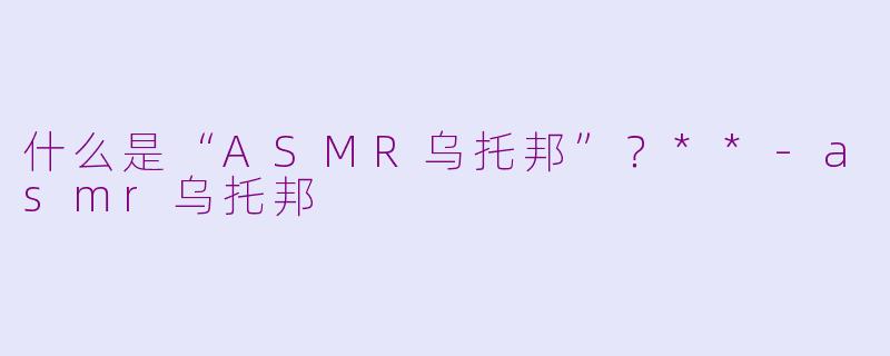 什么是“ASMR乌托邦”?**