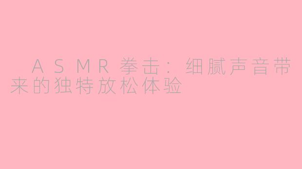 在现代快节奏的生活中,许多人都面临着失眠和焦虑的问题。为了帮助自己放松,越来越多的人开始关注ASMR(自发性知觉经络反应)视频,其中“喘息声”成了备受欢迎的一种声音元素。这种独特的声音,柔和而细腻,仿佛在耳边轻声细语,能有效营造出一种温暖和安宁的氛围。