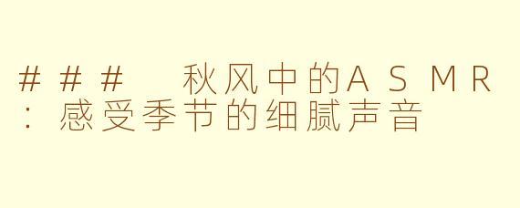 通过录音耳机,我们可以沉浸在这场秋日的ASMR盛宴中,感受风的轻柔,叶子的低吟,以及偶尔传来的远方人声。这些声音仿佛能够洗净心灵,带我们远离喧嚣,进入一个更加平和的空间。在这个充满诗意的季节,ASMR的体验为我们增添了另一份温暖与宁静。
